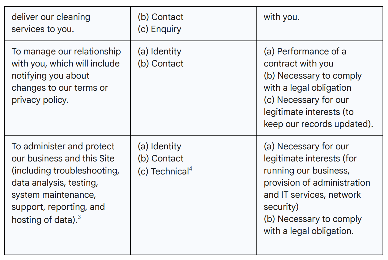 Enquiry Data: Includes any information you provide in the “Message” field of our contact form, detailing your specific cleaning requirements.
